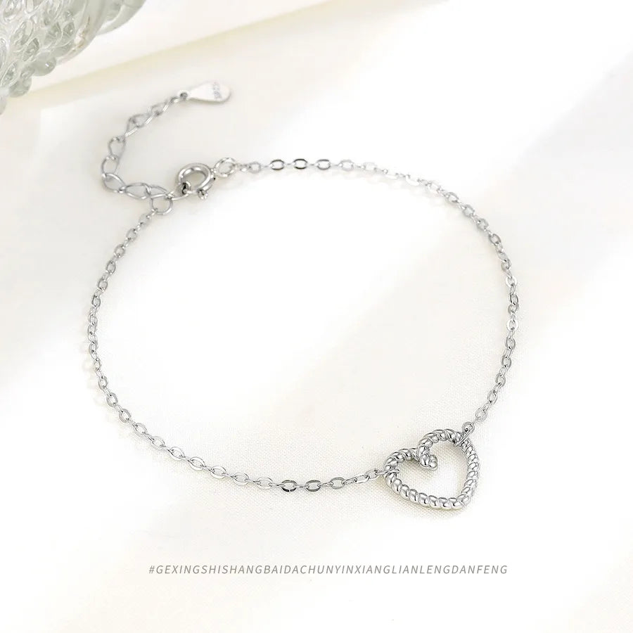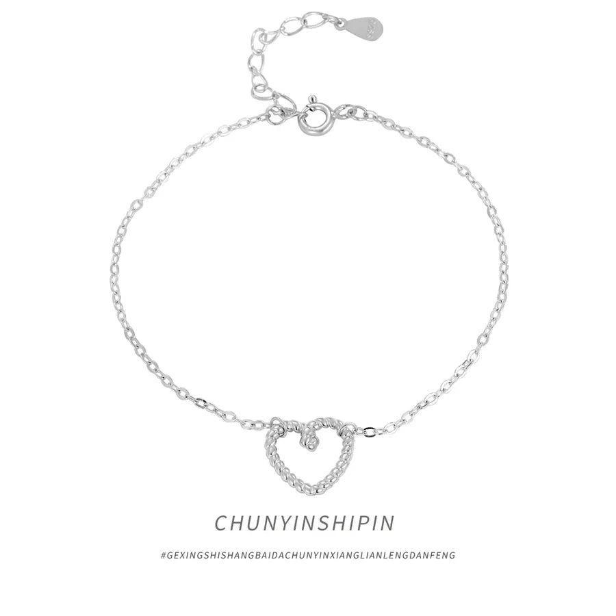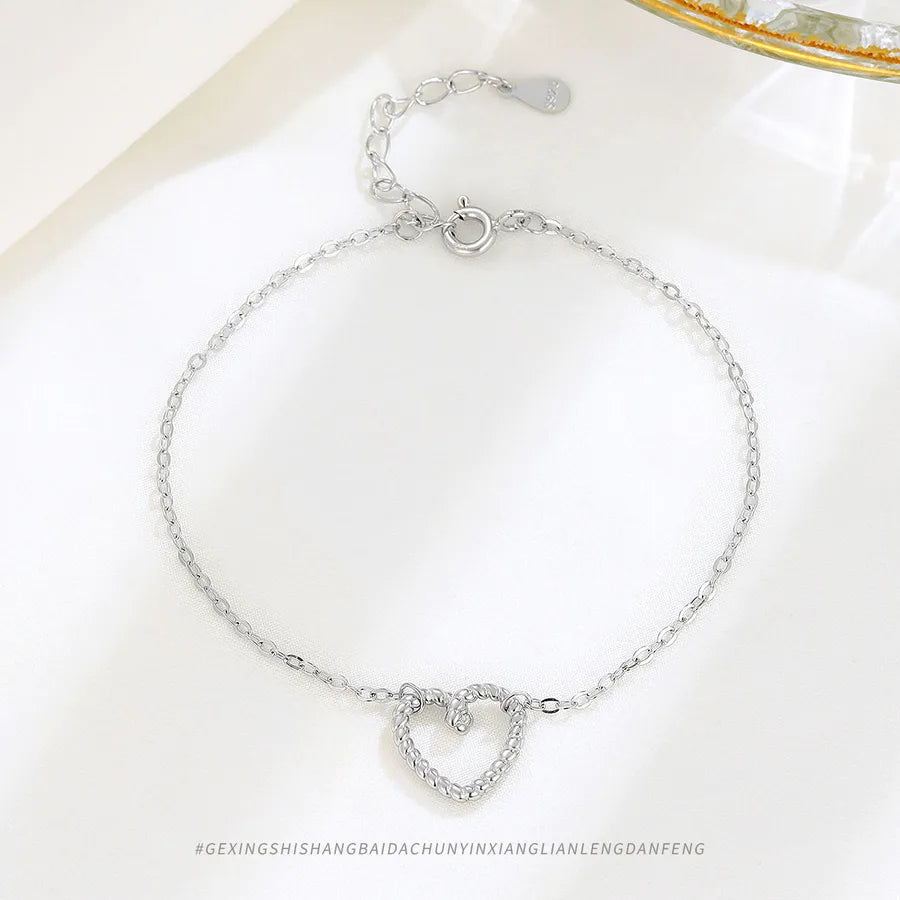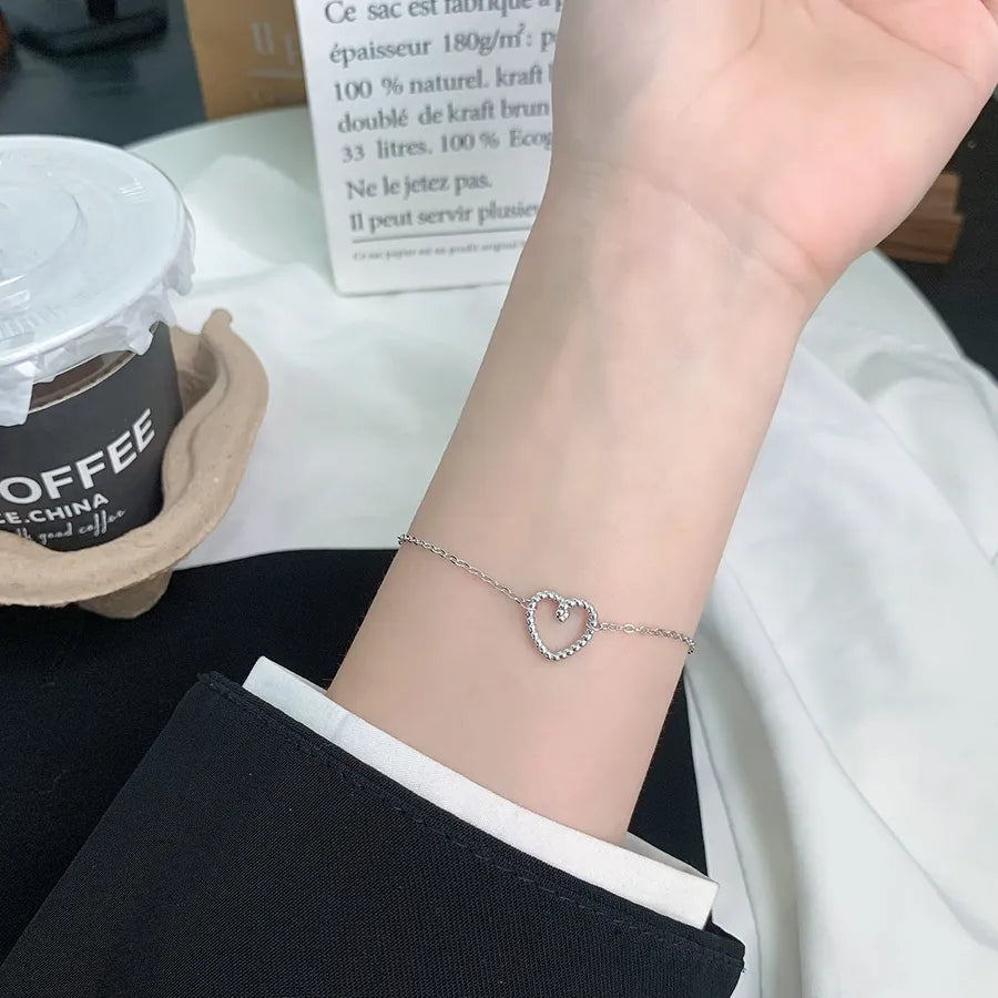 Delicate and timeless, this sterling silver hollow heart bracelet adds a touch of elegance to any outfit. Crafted from high-quality 925 sterling silver and finished with a platinum plating, it offers a luxurious shine and lasting durability. The minimalist heart design makes it perfect for layering or wearing solo, whether you're dressing up for a special occasion or adding charm to your everyday look. Lightweight and versatile, this bracelet is a must-have accessory for women who love refined, feminine jewelry. A thoughtful gift or a stylish treat for yourself.