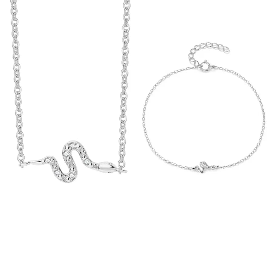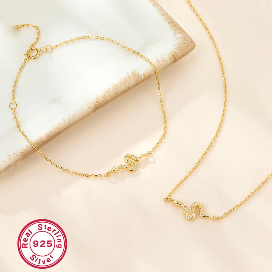 Elevate your accessory game with this stunning S925 sterling silver jewelry set, featuring a snake-inspired design adorned with micro-paved zirconia. This elegant set includes a necklace and bracelet, both plated in 18K gold or platinum for a luxurious finish. Perfect for women who appreciate retro and classic styles, this set is ideal for birthdays, dates, banquets, or everyday elegance. Crafted with precision electroplating and a secure spring ring clasp, it offers both beauty and durability. Whether you're gifting or treating yourself, this timeless jewelry set adds a sophisticated touch to any outfit.
