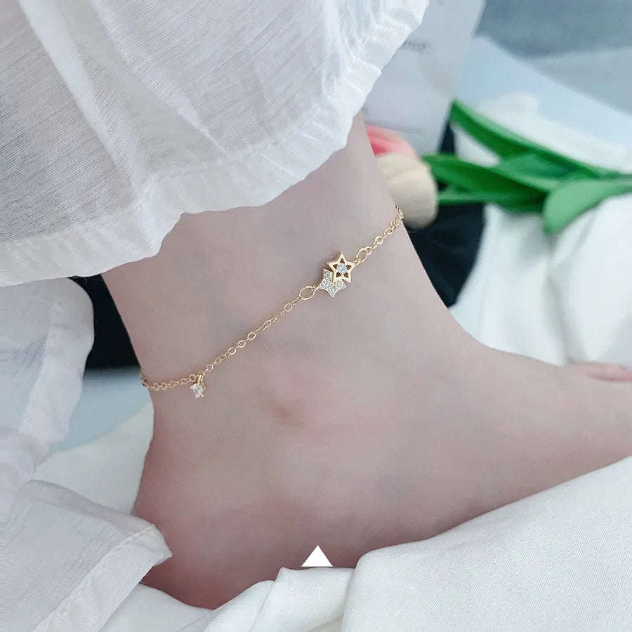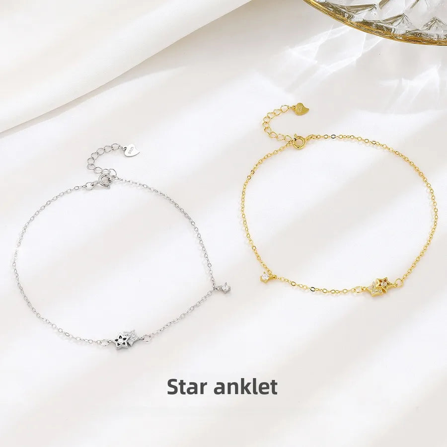 Elevate your summer style with this elegant sterling silver star anklet, designed for women who love subtle sparkle and timeless charm. Crafted from high-quality 925 sterling silver and plated in either 18K gold or platinum, this lightweight anklet is perfect for beach outings, weddings, or everyday wear. The delicate star charm adds a whimsical touch, making it a versatile accessory for any occasion. Whether you're dressing up for a special event or adding flair to your casual look, this anklet brings effortless sophistication and shine to your ensemble. A must-have addition to your jewelry collection.