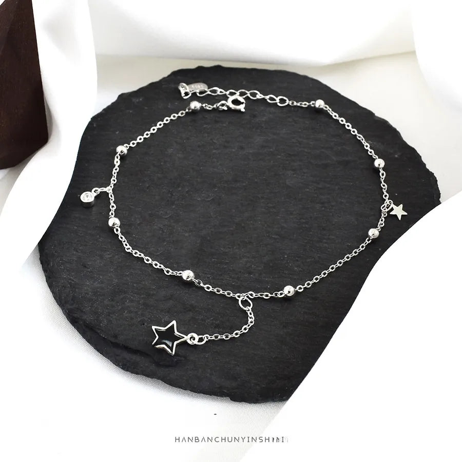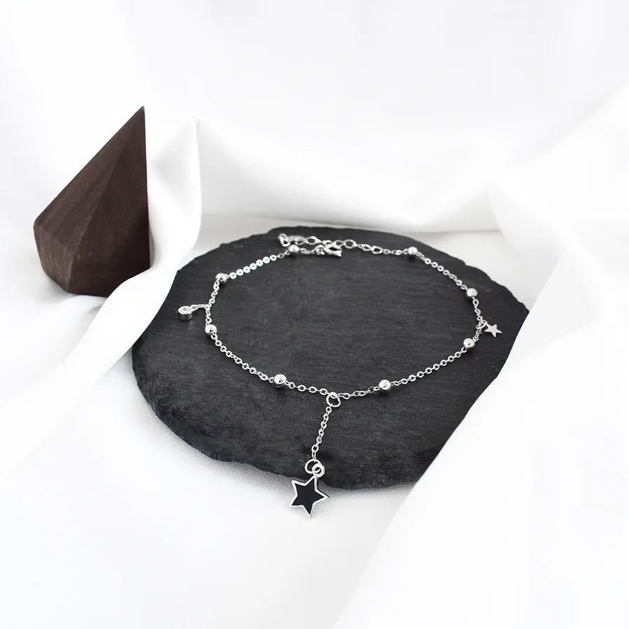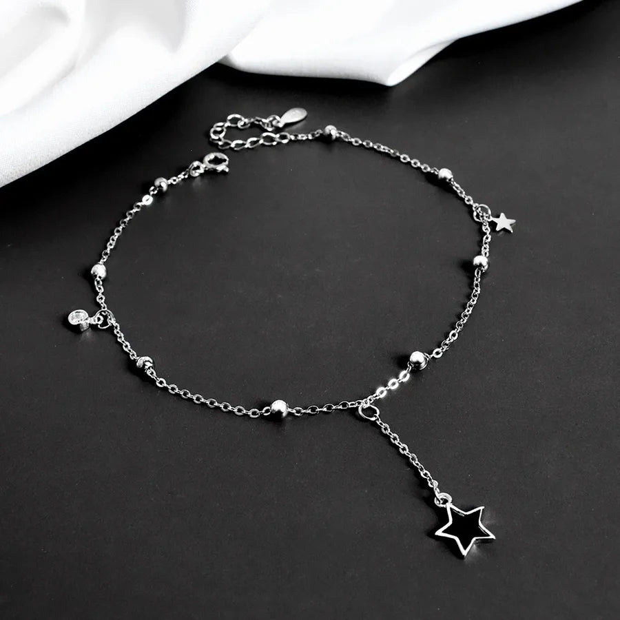 Elevate your summer style with this minimalist sterling silver anklet, designed for women who love subtle elegance. Featuring a delicate star charm and a graceful tassel accent, this anklet adds a touch of sparkle to any outfit. Crafted from high-quality 925 sterling silver and platinum-plated for extra shine, it's perfect for beach days, outdoor adventures, or casual wear. Lightweight and comfortable, this fashionable accessory complements sandals, heels, or barefoot looks. Its electroplated finish ensures long-lasting brilliance, making it a timeless addition to your jewelry collection. A must-have piece for effortless, everyday glamour.