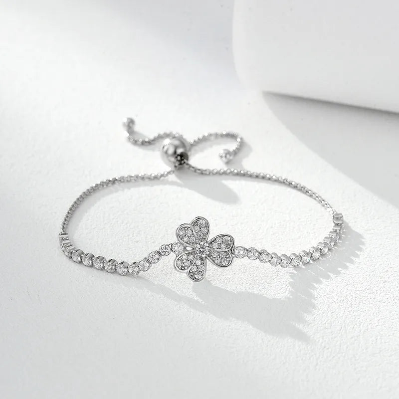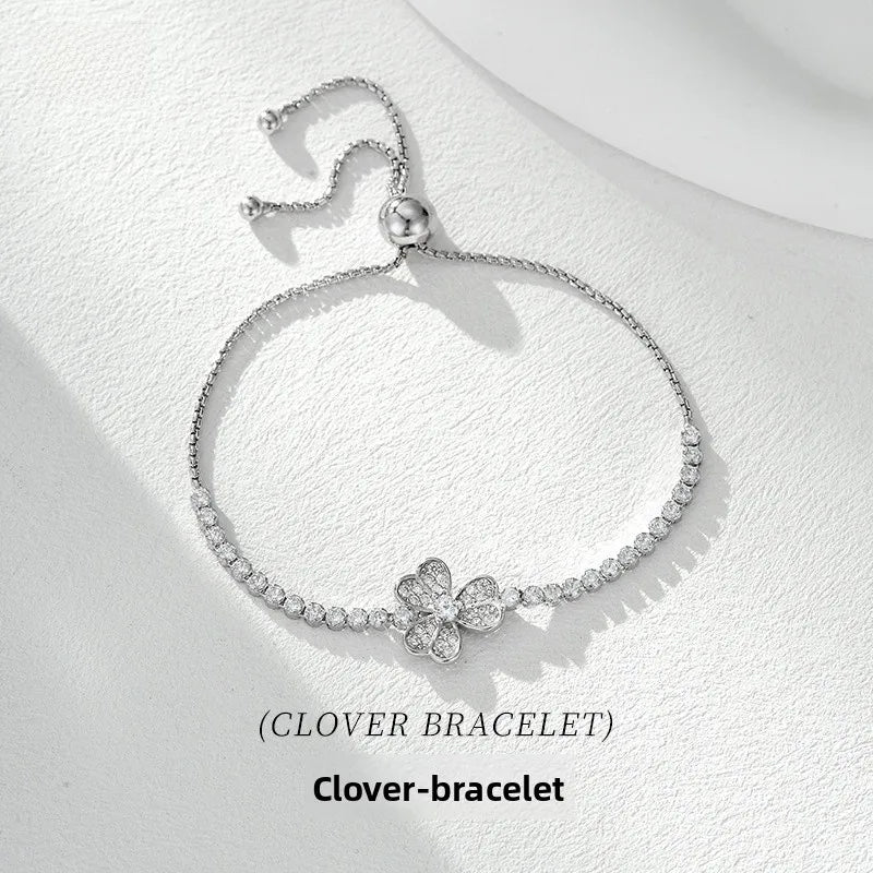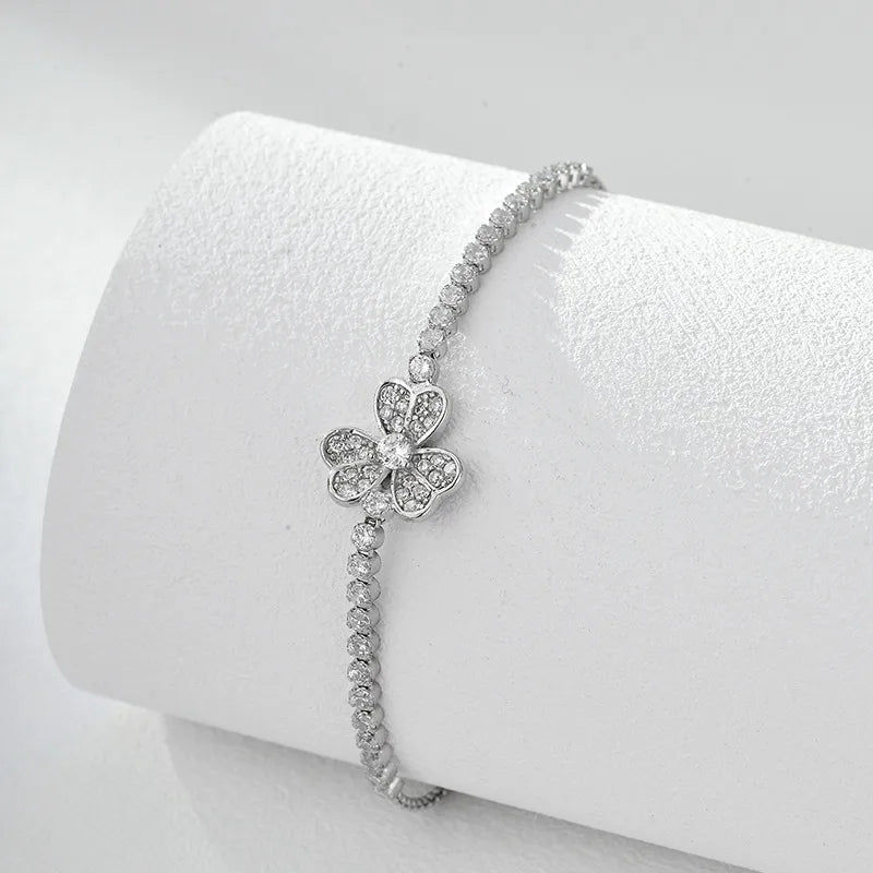 Elevate your everyday style with this elegant three-leaf clover bracelet crafted from genuine 925 sterling silver. Featuring a delicate floral motif and sparkling zircon inlays, this adjustable bracelet blends timeless charm with modern sophistication. Its lightweight design ensures comfortable wear, while the symbolic clover adds a touch of luck and femininity. Perfect for daily wear or as a thoughtful gift, this bracelet complements both casual and dressy outfits. Whether worn solo or layered with other pieces, it brings a refined sparkle to your wrist. Add a graceful accent to your jewelry collection today.
