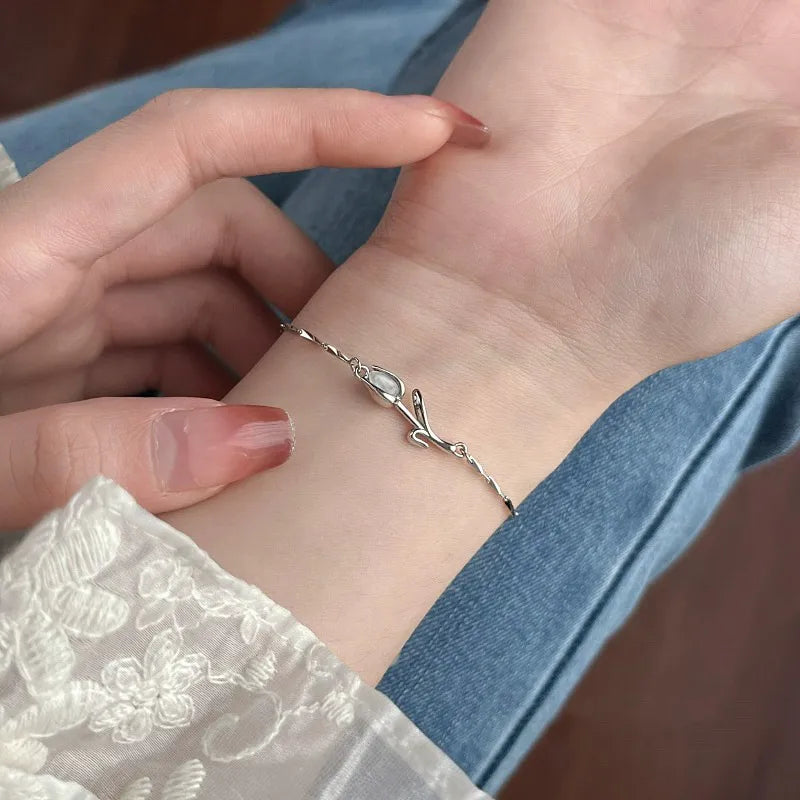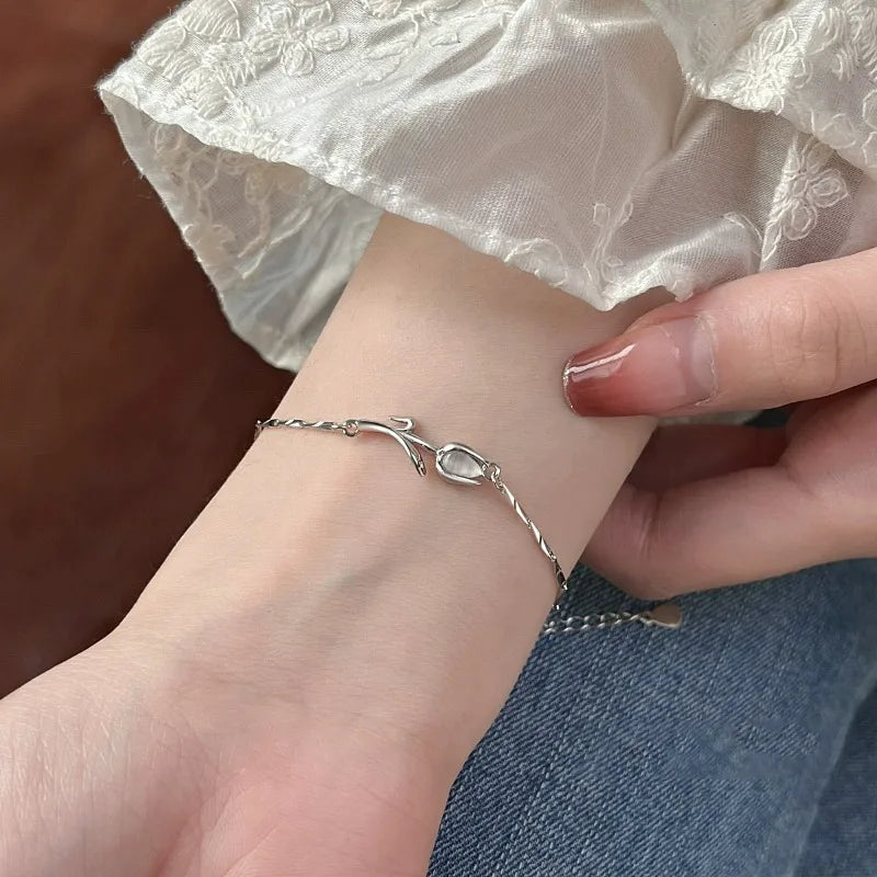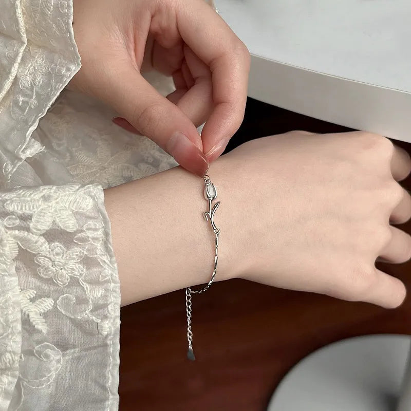 Delicately crafted from genuine 925 sterling silver, this vintage tulip bracelet adds a charming bohemian touch to any outfit. Featuring a simple geometric design inspired by blooming tulips, it’s the perfect accessory for daily wear or a thoughtful gift for a best friend. The lightweight construction ensures comfort all day long, while the PVD gold plating enhances durability and shine. Whether worn solo or layered in a bracelet stack, this piece brings elegance and individuality to your jewelry collection. A timeless choice for women who appreciate subtle, nature-inspired design.