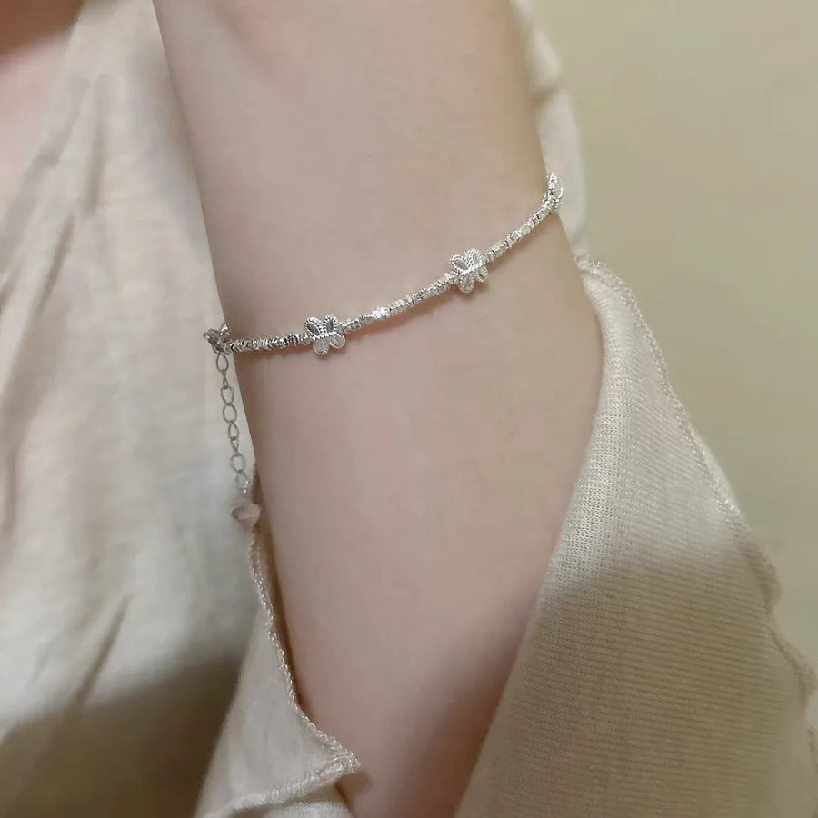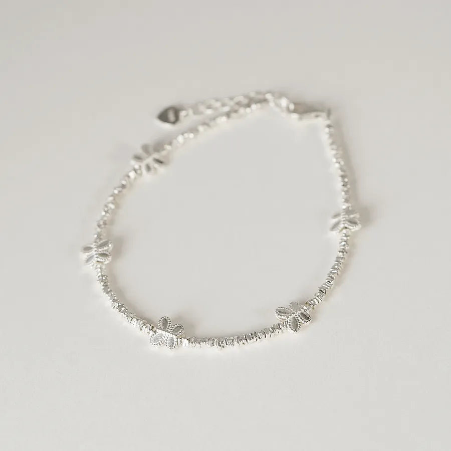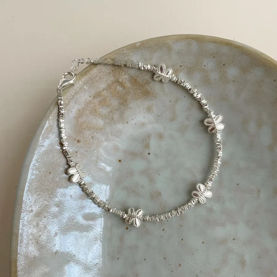 Delicate and charming, this sterling silver butterfly bracelet is a perfect blend of elegance and whimsy. Handcrafted with precision, it features a graceful butterfly motif that adds a touch of nature-inspired beauty to your wrist. Made from high-quality 925 sterling silver, this lightweight piece is ideal for everyday wear or special occasions. Its irregular, handmade design gives it a unique character, making it a thoughtful gift or a stylish addition to your jewelry collection. Whether worn alone or layered, this bracelet enhances any outfit with its sweet and sophisticated appeal.
