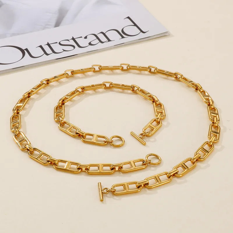 Elevate your everyday look with this elegant 18K gold plated jewelry set crafted from durable titanium steel. Designed for women who appreciate timeless simplicity, this set features a sleek, solid color finish and a waterproof, non-tarnish PVD coating. Ideal for daily wear or special occasions, it offers a versatile style that transitions effortlessly from work to weekend. Lightweight at just 17g, it provides lasting comfort without compromising on sophistication. Whether you're gifting or treating yourself, this jewelry set adds a refined touch to any outfit while maintaining its shine and beauty over time.