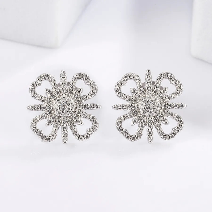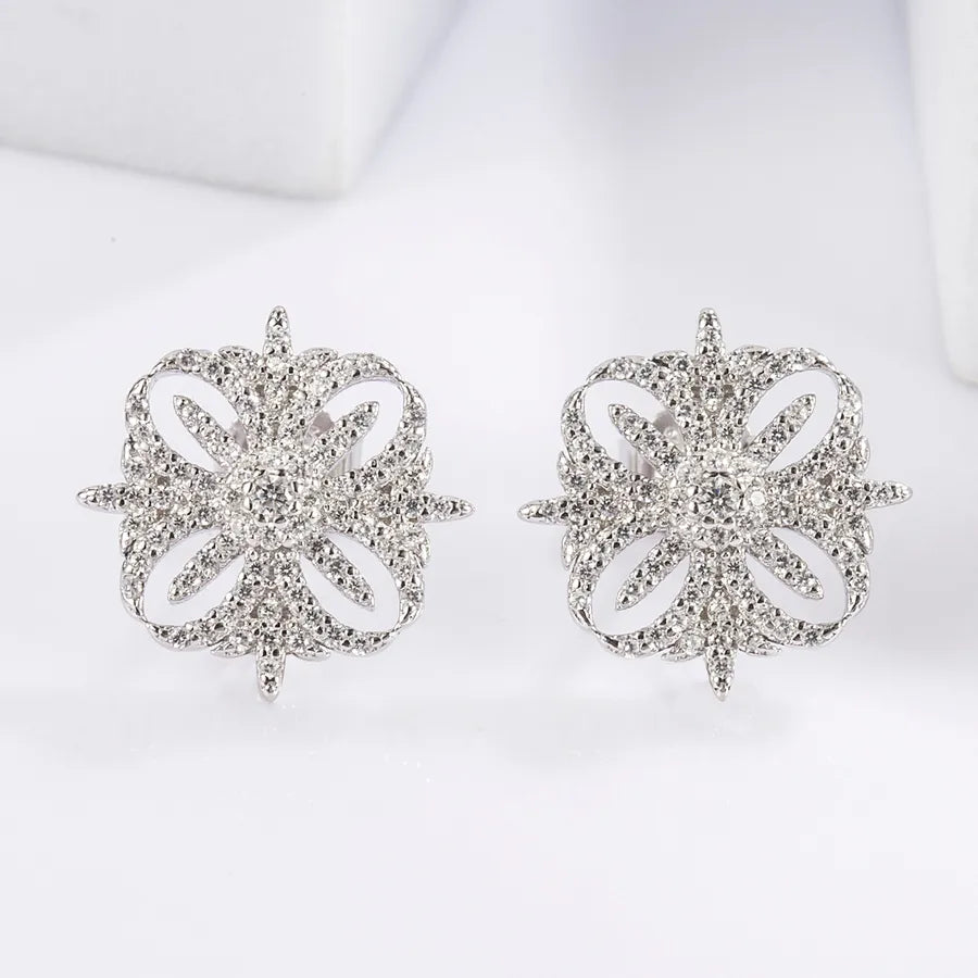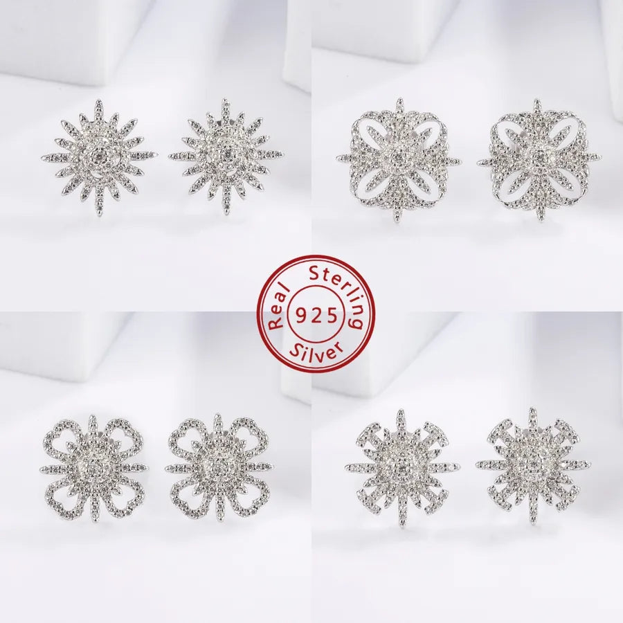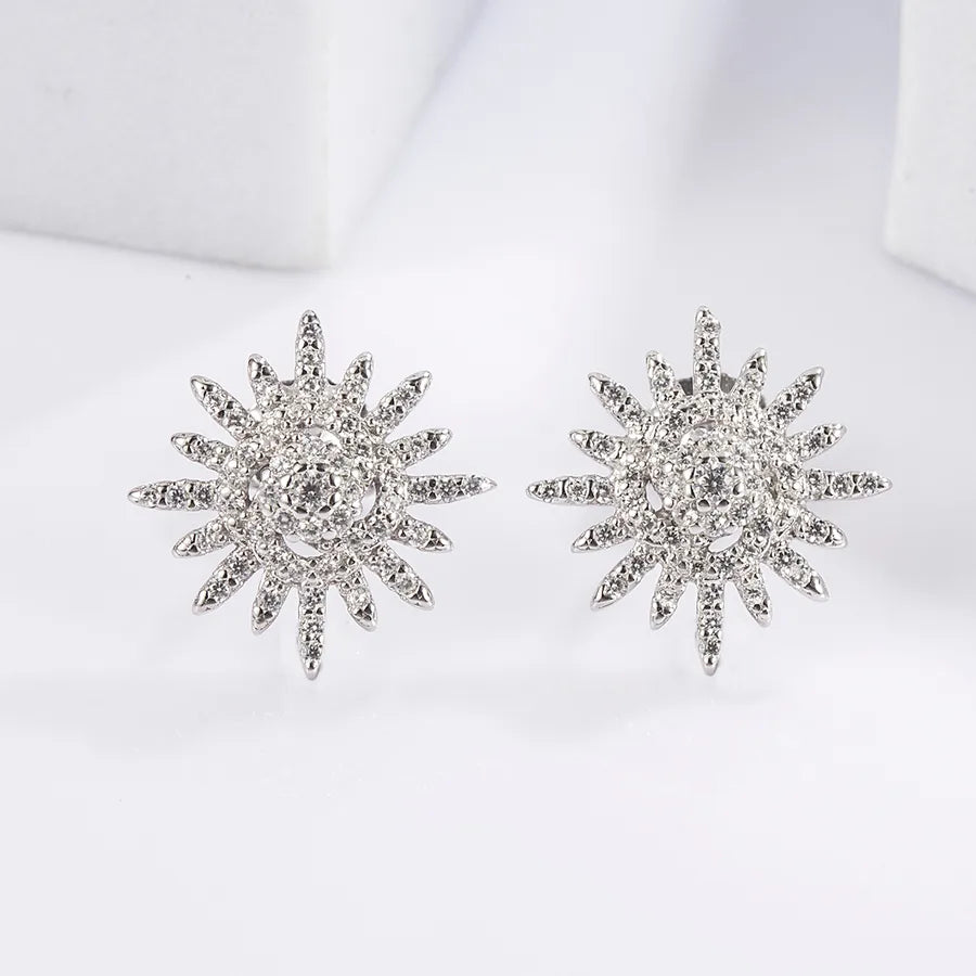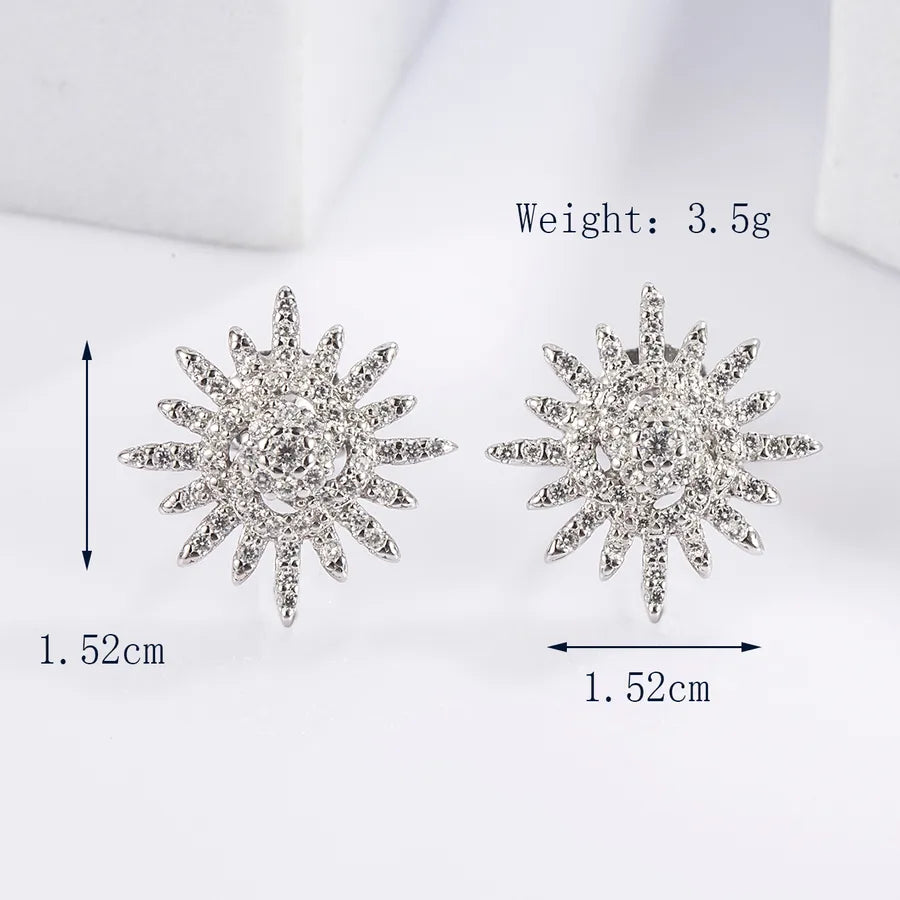 Sterling Silver Sun & Snowflake Zircon Stud Earrings