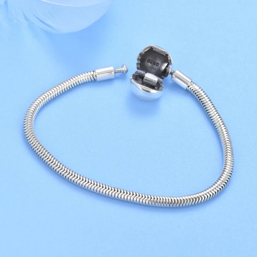 Elevate your jewelry collection with this elegant sterling silver snake chain bracelet, designed for effortless charm customization. Crafted from premium 925 sterling silver and platinum-plated for lasting shine, this bracelet features a soft, flexible link structure and hollow bead accents for a refined European-inspired look. Its polished finish and geometric pattern make it a versatile accessory for both casual and formal outfits. Lightweight at just 8g, it offers comfortable wear all day long. Whether worn solo or stacked, this bracelet adds a touch of sophistication and personal flair to your everyday style.