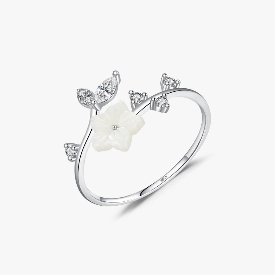 Anel Ajustável de Flor com Zircão em Prata Esterlina