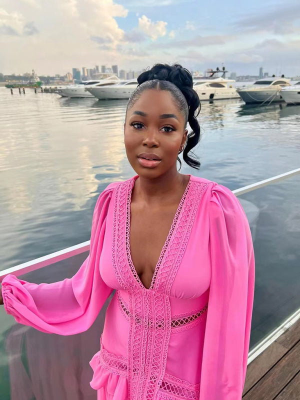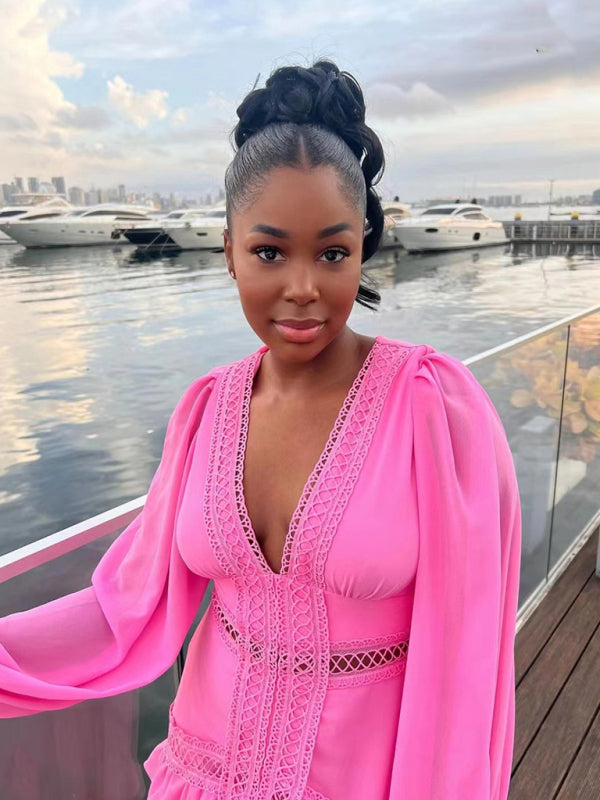 Refined, flattering, and easy to wear, the Elegant Patchwork Long Sleeve V-Neck Midi Dress is your ideal companion for cooler seasons. The deep V-neckline gently elongates the neckline, while the tailored silhouette skims the body without clinging. Crafted from 100% woven polyester, it offers a breathable feel with structure for a polished shape. Whether you're headed to a brunch, an office gathering, or a family dinner, this dress balances casual elegance with season-ready comfort.