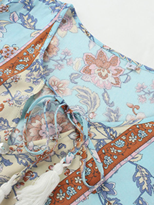 Boho Floral Mini Dress – Lightweight Puff Sleeve Woven Dress in 4 Colors