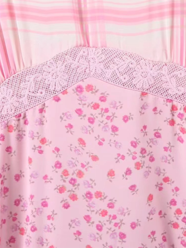 Colorblock Lace Long Sleeve Dress – Romantic Woven Fit for Spring & Summer