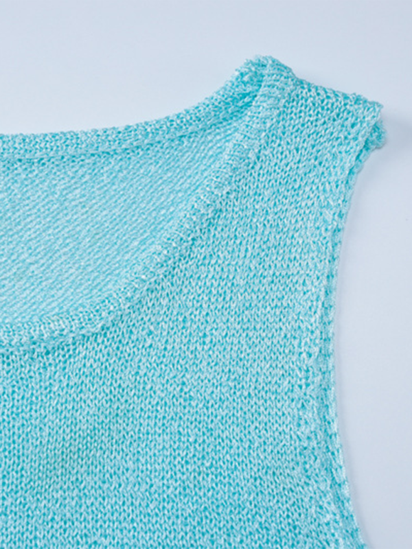 Slim Knit Sleeveless Dress – Round Neck Solid Color for Summer Chic
