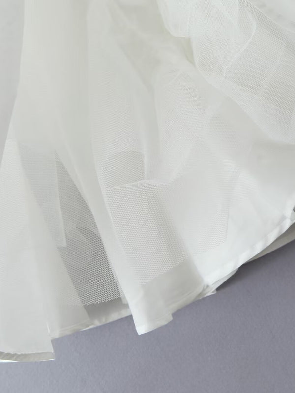 Cotton Square Neck Backless Dress with Flying Sleeves – White