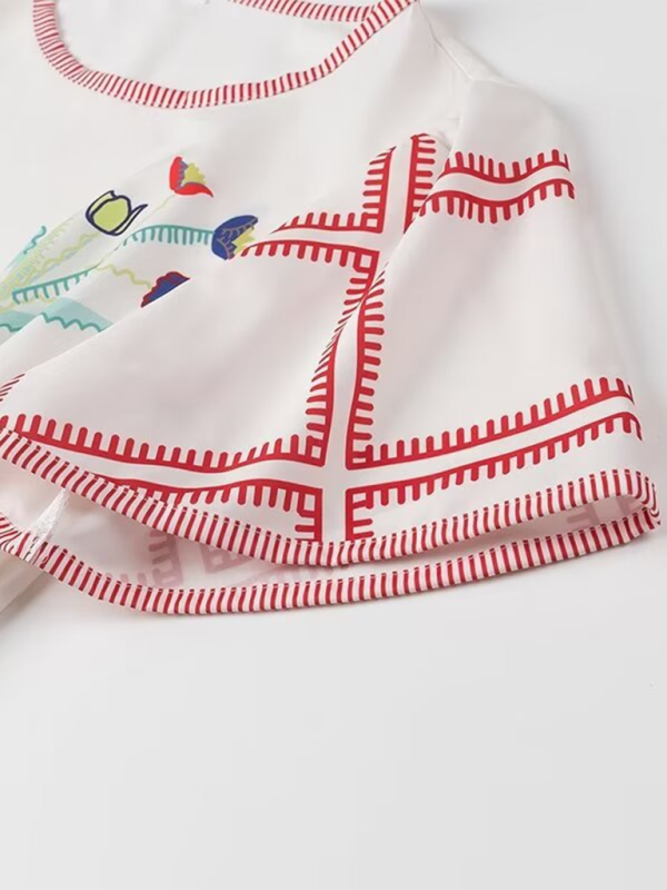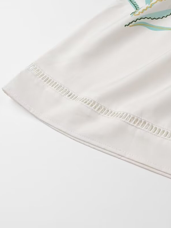 White Printed Short Sleeve Maxi Dress – Vacation Style, No Stretch