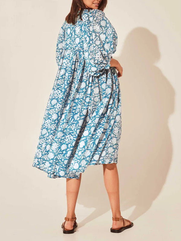 Designed for effortless elegance and comfort, this floral boho dress is your go-to piece for seasonal getaways and everyday chic. With its high-waisted silhouette and roomy lantern sleeves, this dress delivers breezy sophistication for any occasion—from beach vacations to brunch dates. The soft woven rayon fabric ensures lightweight comfort without clinging.