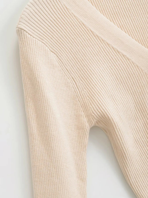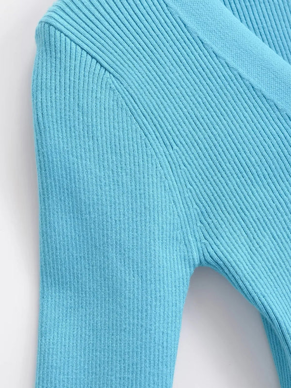 - Detalhes: Decote em V, sem bolsos, malha tricotada