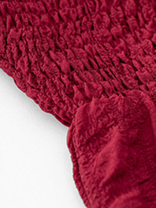 Pleated Long-Sleeve Midi Dress – Elegant Solid Color for Spring & Summer