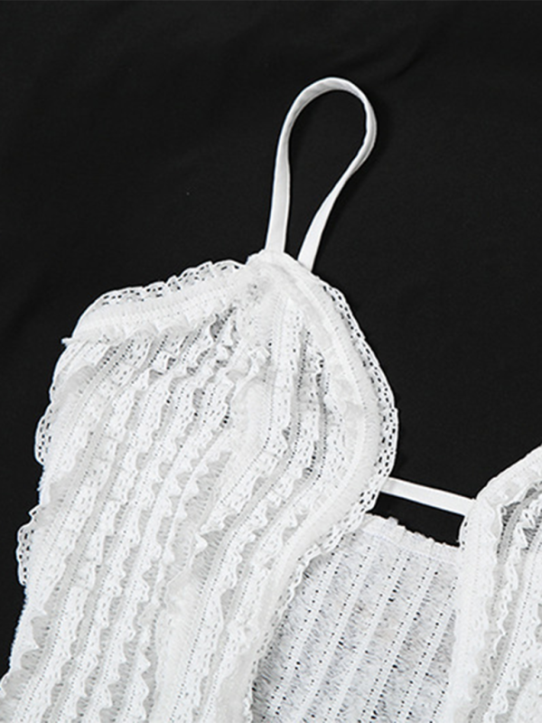 Leg-Lengthening Slit Suspender Dress – Low-Cut Slim Fit in White or Black