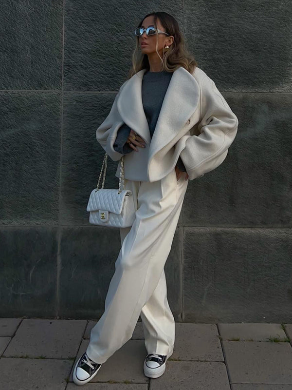New woolen cardigan jacket fan-shaped buttonless placket design thickened women's jacket