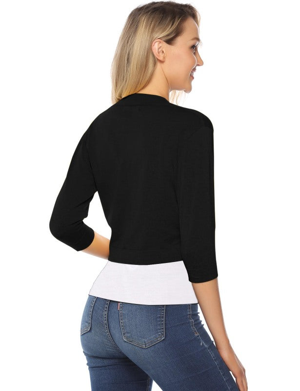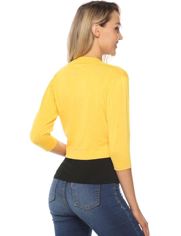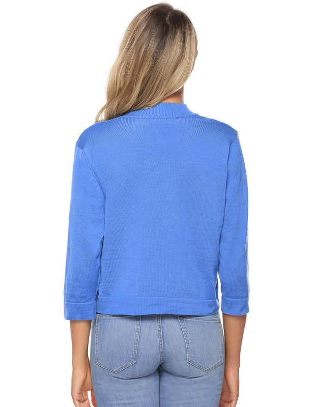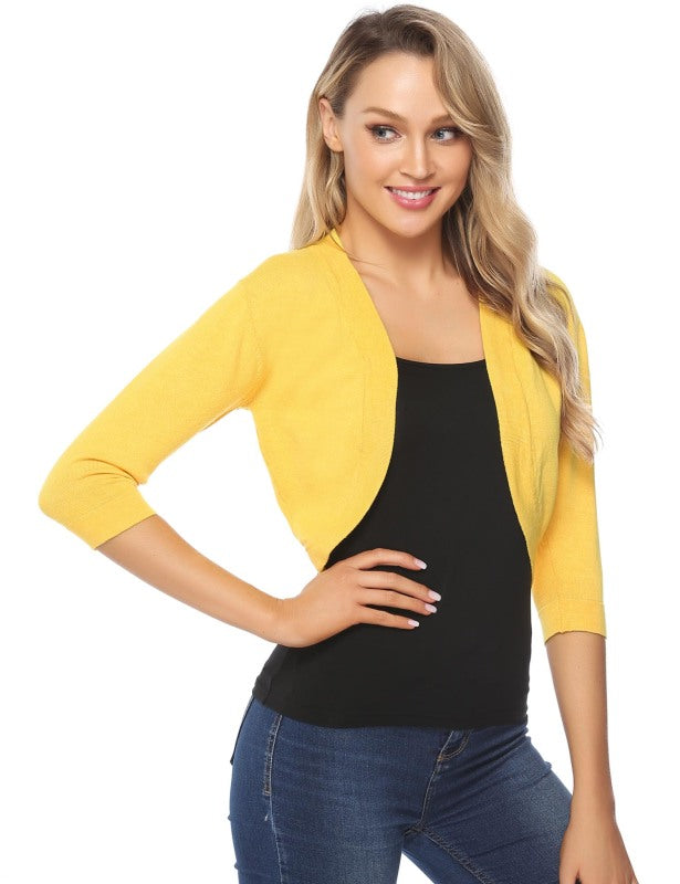 Легкий, дышащий и без усилий стильный, этот укороченный вязаный кардиган с рукавом 3/4 станет вашим универсальным слоем для круглогодичного стиля. Созданный с привлекательным открытым передом и высокоэластичным трикотажем, он красиво драпируется поверх платьев, топов или блузок. Смесь хлопка и акрила обеспечивает мягкость и структуру, а укороченный крой добавляет современный штрих любому образу. Независимо от того, собираетесь ли вы на бранч или надеваете его в офис, этот кардиган придаст вашему образу легкую изысканность. Его однотонный цвет и чистый силуэт делают его универсальной базовой вещью, к которой вы будете возвращаться снова и снова.