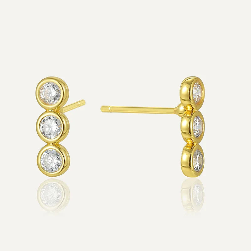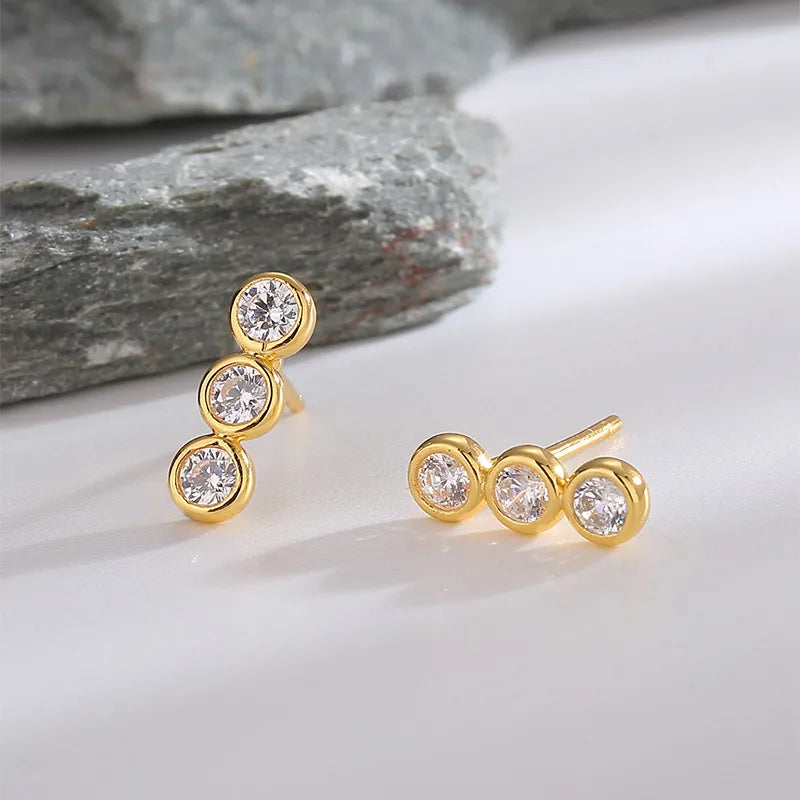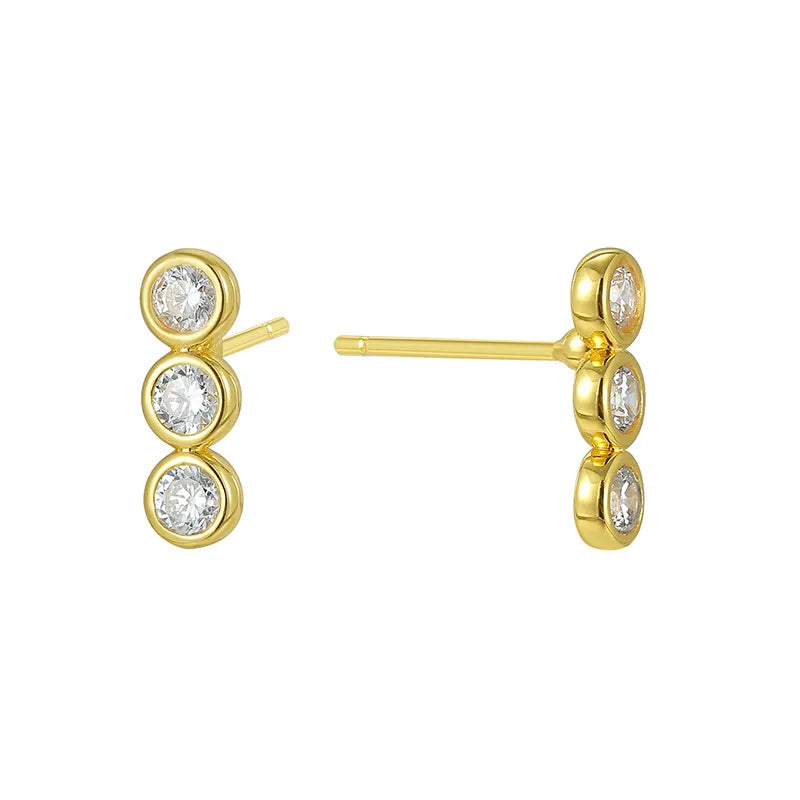 14K Gold Plated Sterling Silver Zircon Stud Earrings