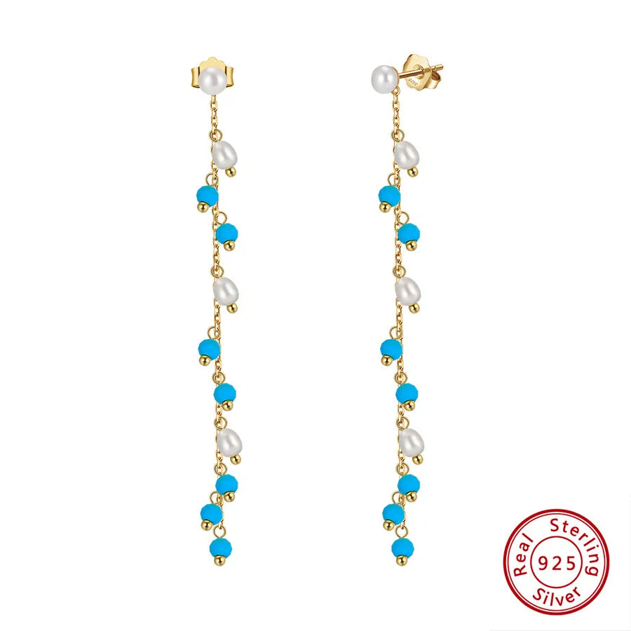 Elevate your jewelry collection with these elegant 925 sterling silver drop earrings featuring luminous freshwater pearls and a modern geometric design. Perfect for both daily wear and special occasions, these earrings combine classic charm with contemporary style. The polished finish and electroplated gold accents enhance their timeless appeal. Lightweight and comfortable, they are ideal for all-day wear in any season. Whether you're dressing up for a holiday event or adding a touch of sophistication to your everyday outfit, these earrings are a versatile and stylish choice for any woman who appreciates refined accessories.