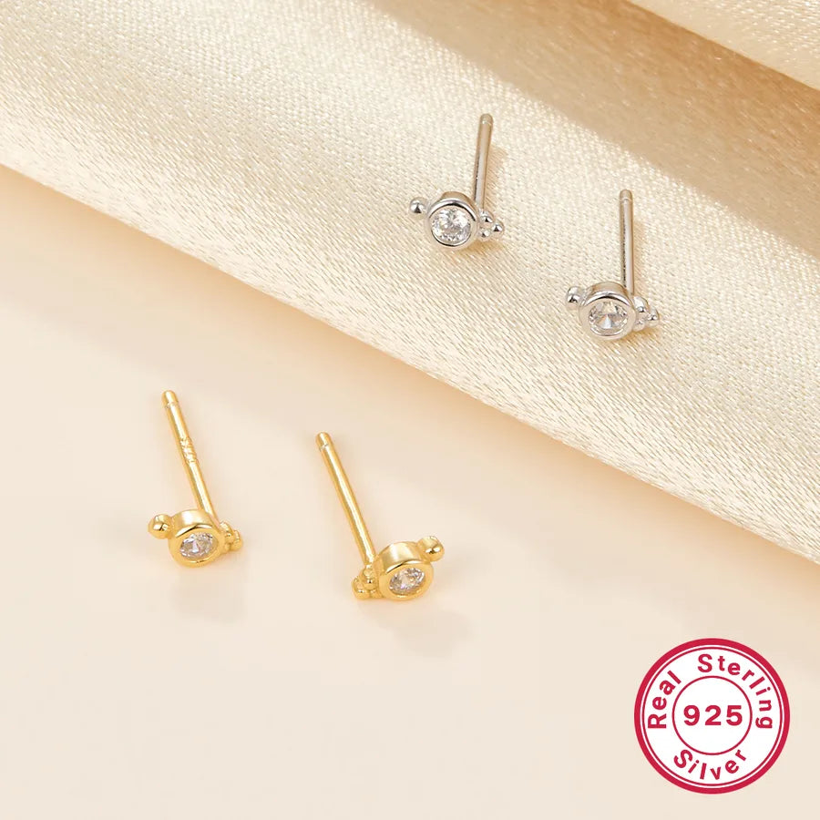 Elevate your everyday look with these elegant 925 sterling silver zircon round stud earrings. Designed for both men and women, these unisex earrings feature a timeless round shape and are crafted from high-quality sterling silver for lasting shine and durability. The sparkling zircon inlay adds a touch of sophistication, while the 18K gold or white gold plating enhances their luxurious appeal. Lightweight and comfortable, they are perfect for casual wear, daily outfits, or romantic getaways. Whether you're dressing up or down, these versatile ear studs make a refined statement with effortless charm and style.