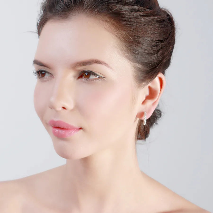 Höj din vardagsstil med dessa eleganta 925 sterlingsilverörhängen med rund zirkon. Designade för kvinnor som uppskattar tidlös enkelhet, har dessa örhängen bländande zirkonstenar infattade i polerad vitguldsplätering. Lätta men hållbara, de erbjuder en bekväm passform för hela dagen. Oavsett om du klär upp dig för ett högtidligt evenemang eller lägger till en subtil glans till din dagliga outfit, är dessa örhängen den perfekta accessoaren. Den runda designen och högkvalitativa materialen säkerställer bestående skönhet och glans, vilket gör dem till ett mångsidigt tillskott i varje smyckessamling. Passar för alla årstider och tillfällen.