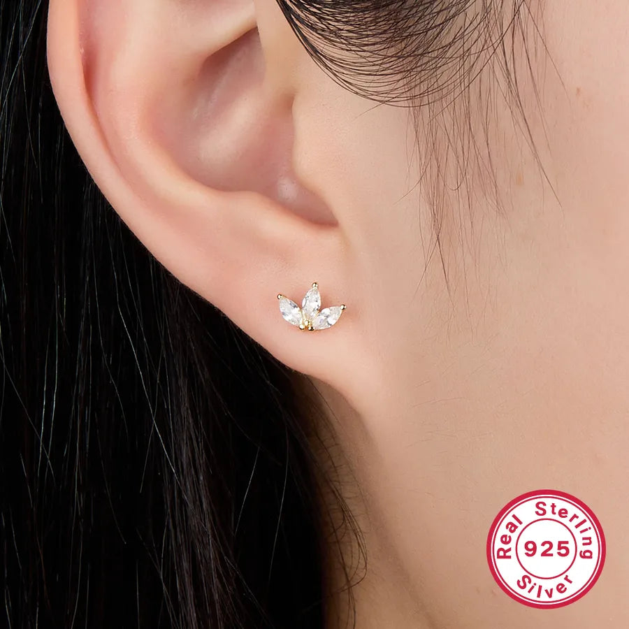 Sterling Silver Shamrock Zircon Stud Earrings