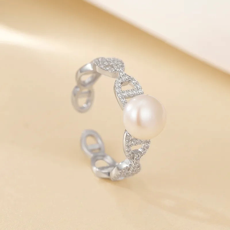 18K guld- och silverpläterad pärl-geometrisk öppen ring