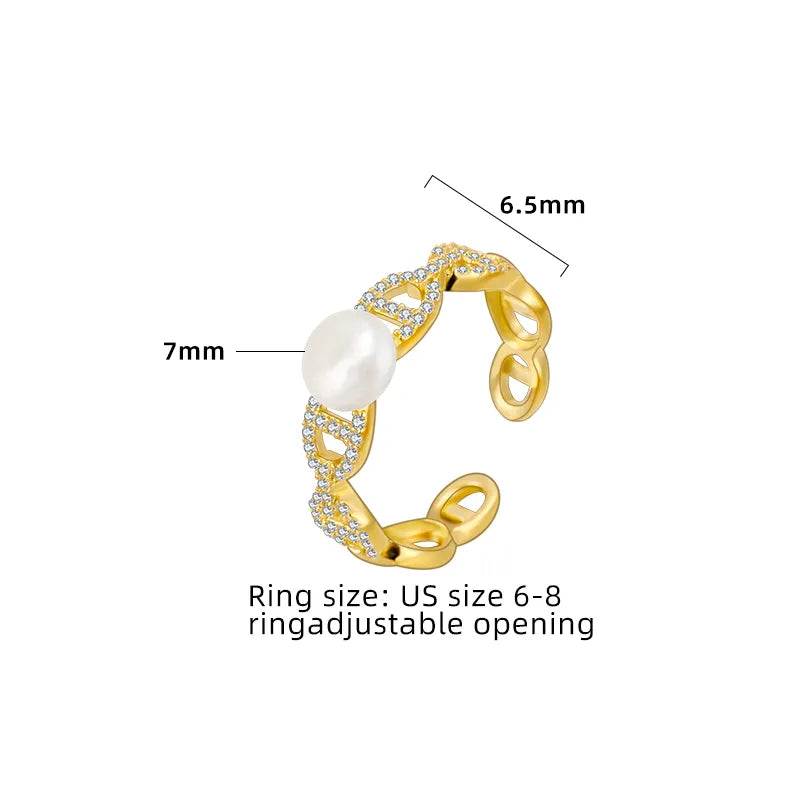 Höj din smyckessamling med denna eleganta öppna ring, tillverkad av premium 925 sterlingsilver och pläterad i både 18K guld och vitt guld. Med en modern geometrisk design med fina pärlor och zirkoninfattningar, tillför denna ring en touch av lyx till varje outfit. Dess justerbara passform säkerställer komfort och mångsidighet, vilket gör den perfekt för dagligt bruk, speciella tillfällen eller festliga evenemang. Lätt men iögonfallande, kombinerar denna ring glamour och sofistikering utan ansträngning. Oavsett om du klär upp dig för en bankett eller lägger till glans i din vardagslook, är detta smycke ett tidlöst tillskott till dina accessoarer.
