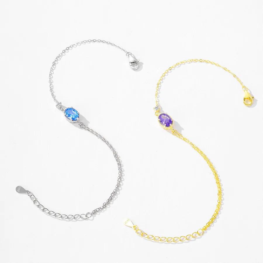 Elevate your everyday look with this Sterling Silver Colorful Zircon Geometric Bracelet, designed for the modern woman who appreciates elegance and simplicity. Crafted from high-quality 925 sterling silver and platinum plated for added brilliance, this bracelet features a vibrant oval-shaped zirconia centerpiece that adds a pop of color to any outfit. Lightweight and comfortable, it’s perfect for daily wear or special occasions. Its minimalist design makes it ideal for stacking or wearing solo. Whether you're dressing up or keeping it casual, this bracelet adds a touch of luxury and sophistication to your wrist.