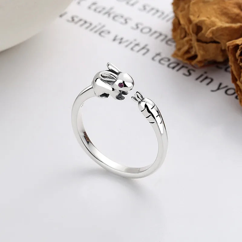 Cute Rabbit & Carrot S925 Silver Open Ring
