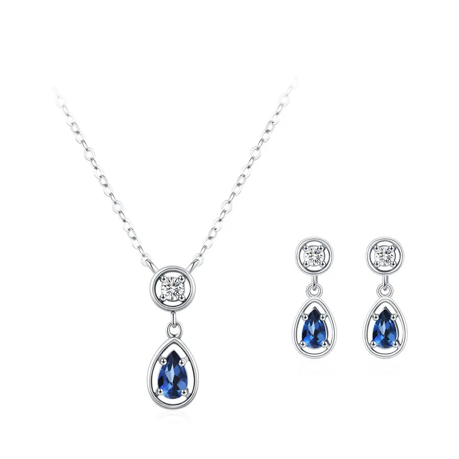 Elevate your elegance with this stunning S925 sterling silver jewelry set, featuring a teardrop-shaped blue sapphire pendant and matching earrings. Designed for women who appreciate timeless beauty, this set combines simplicity with sophistication. The geometric design and shimmering zircon inlays add a refined sparkle, perfect for weddings, formal events, or everyday luxury. Lightweight and comfortable, this set is ideal for gifting or enhancing your personal collection. Whether you're dressing up for a special occasion or adding a touch of glamour to your daily look, this jewelry set offers the perfect blend of style and grace.