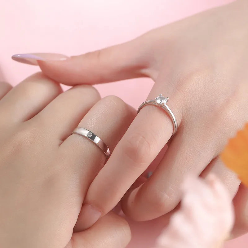 Celebrate love and connection with these elegant couple rings crafted from premium 925 sterling silver. Featuring a minimalist geometric design and sparkling zircon stones, these rings offer a timeless look perfect for any occasion. Whether you're marking a special moment or simply expressing your bond, these unisex rings are designed to complement both men and women. Lightweight and comfortable for everyday wear, they combine modern luxury with classic charm. Ideal for holidays, weekends, or daily use, these rings make a thoughtful gift or a stylish addition to your jewelry collection.