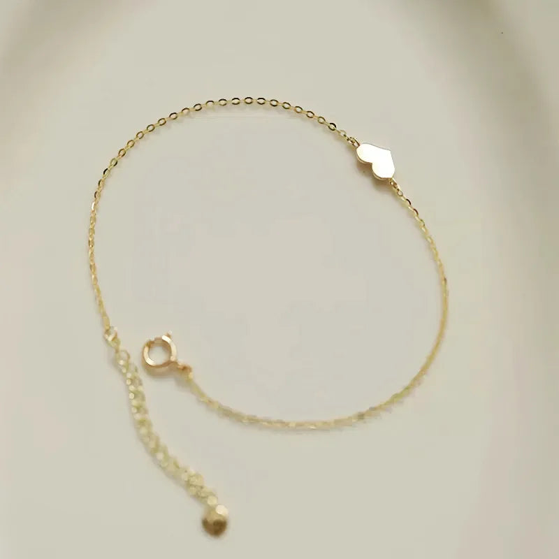 Celebrate elegance and simplicity with this dainty heart-shaped bracelet, crafted from high-quality S925 sterling silver and finished with a radiant 14K gold plating. Designed for women who appreciate timeless charm, this lightweight piece is perfect for anniversaries, romantic gifts, or everyday wear. The smooth heart centerpiece adds a touch of sweetness, while the minimalist design ensures it pairs effortlessly with any outfit. Whether worn alone or layered with other pieces, this bracelet brings a subtle sparkle to your wrist. A thoughtful gift for someone special or a lovely treat for yourself.