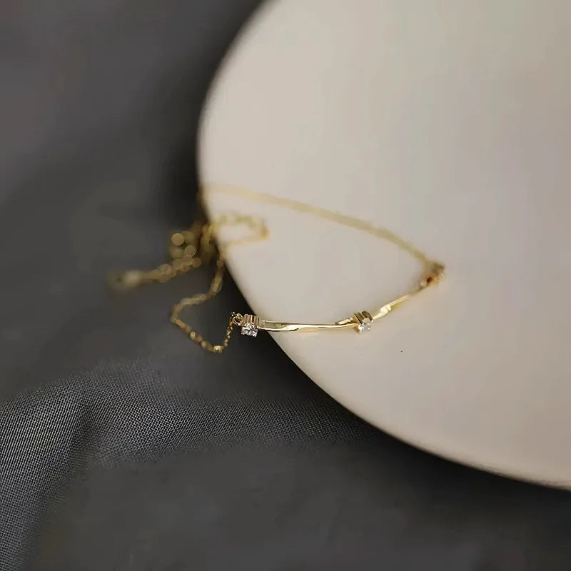 Celebrate timeless elegance with this 14K gold plated Mobius bracelet, crafted from genuine S925 sterling silver. Designed for women who appreciate minimalist beauty, this bracelet features a wave-inspired Mobius twist and delicate diamond accents. Its lightweight design makes it perfect for everyday wear or special occasions like anniversaries. The unique rhombus and wave pattern adds a subtle yet sophisticated touch to any outfit. Whether you're gifting a loved one or treating yourself, this bracelet is a meaningful symbol of infinite connection and enduring style. Add a refined sparkle to your jewelry collection today.