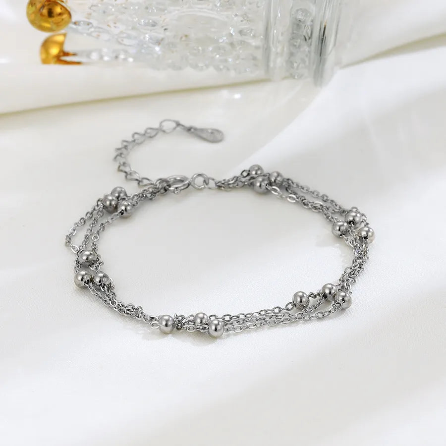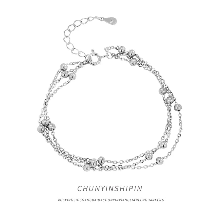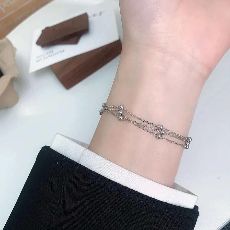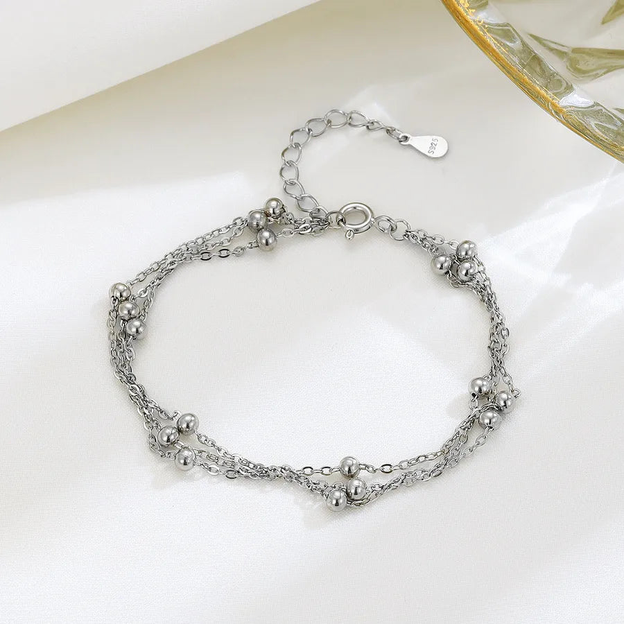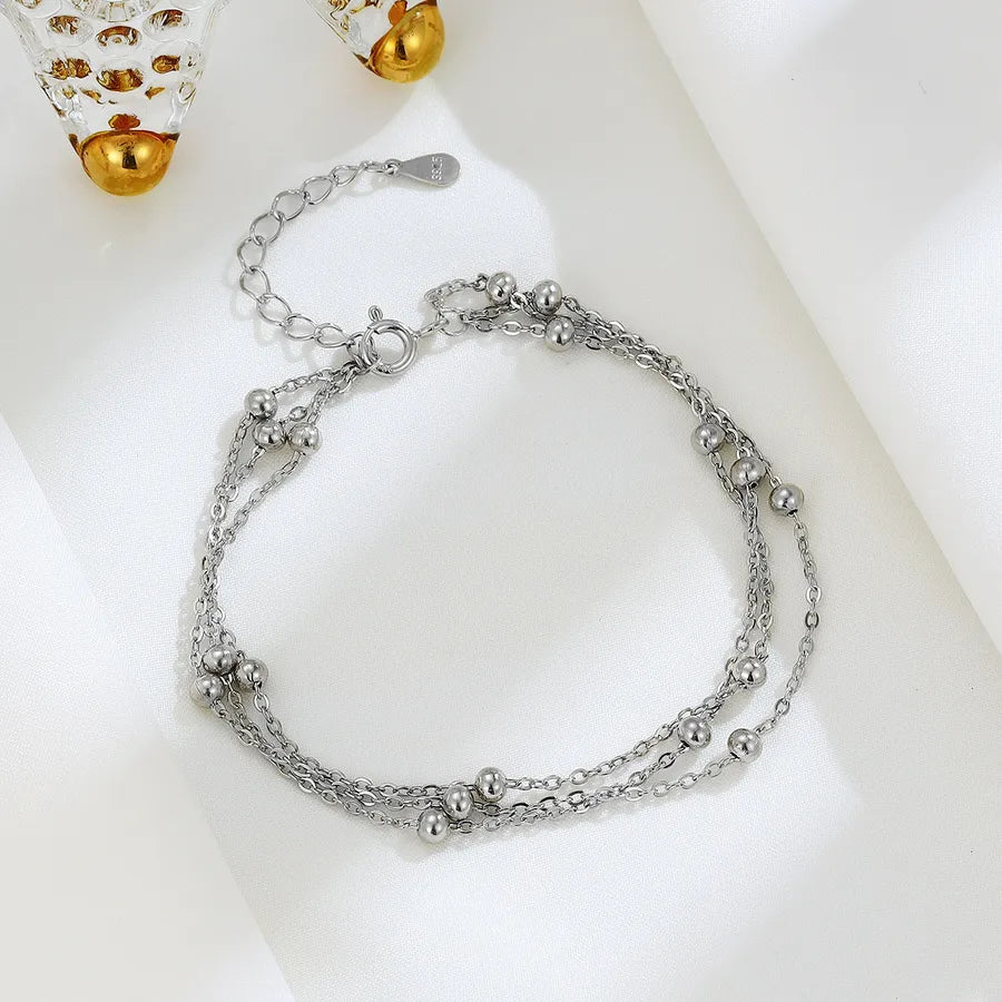 Elevate your accessory game with this elegant triple-layer beaded bracelet crafted from premium 925 sterling silver. Designed for the modern woman, it features delicate spacer beads and a geometric pattern that adds a touch of sophistication to any outfit. Whether you're heading to a weekend brunch or a formal banquet, this versatile piece complements both casual and dressy looks. Lightweight and comfortable, it’s perfect for stacking or wearing solo. Its timeless design and quality craftsmanship make it a must-have addition to your jewelry collection. Add charm and sparkle to your wrist with this stylish bracelet.