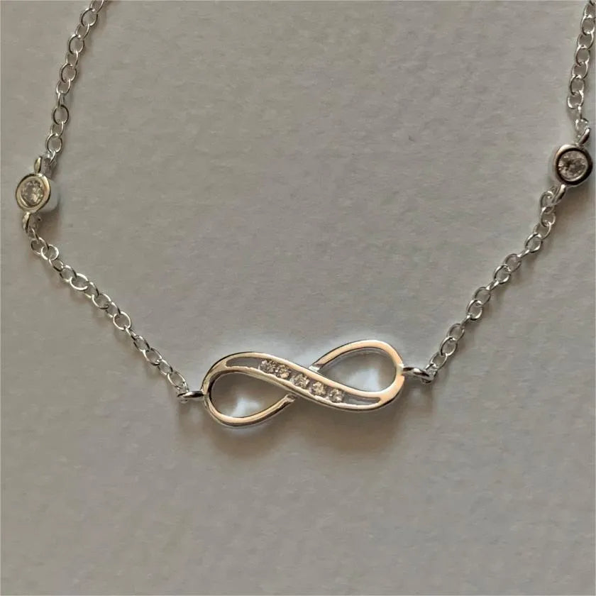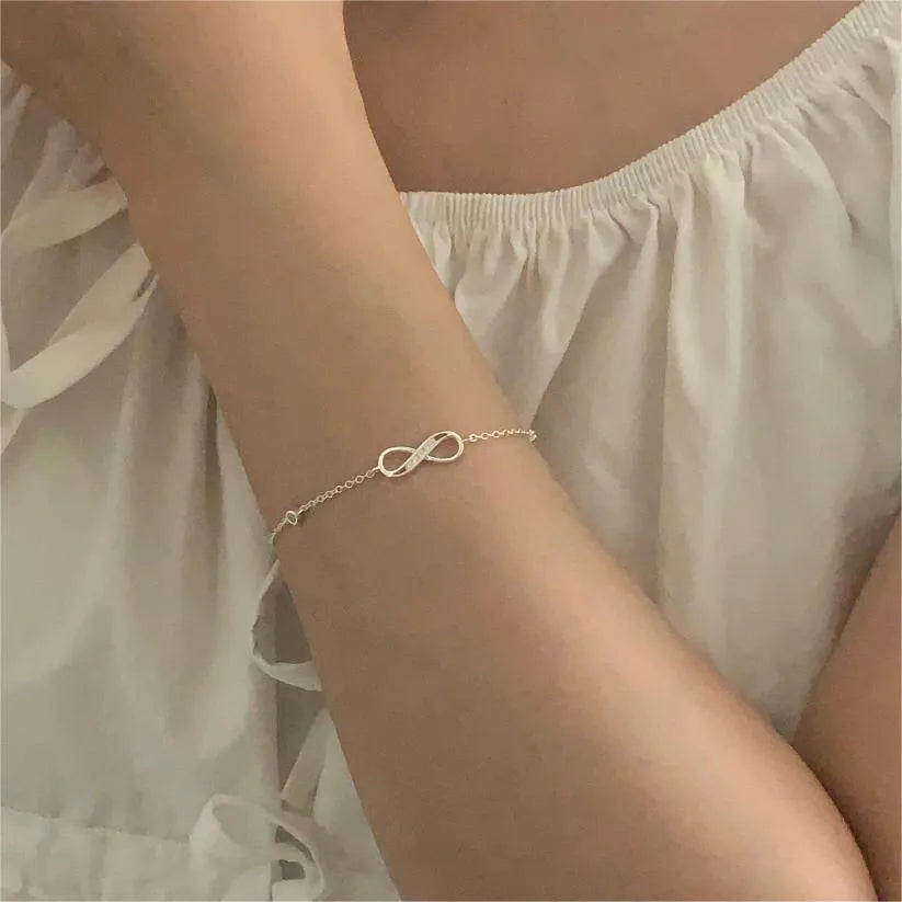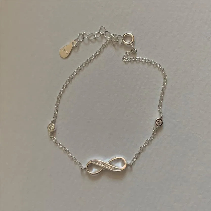 Elegant and timeless, this S925 silver bracelet features a sleek infinity symbol adorned with sparkling zirconia stones. Handmade with precision, it offers a minimalist yet sophisticated look that complements any outfit. Lightweight at just 3g, it’s perfect for everyday wear or special occasions. Whether worn alone or stacked with other pieces, this bracelet adds a touch of refined charm to your wrist. Its geometric design and high-quality craftsmanship make it a must-have accessory for jewelry lovers seeking both style and meaning in their collection.